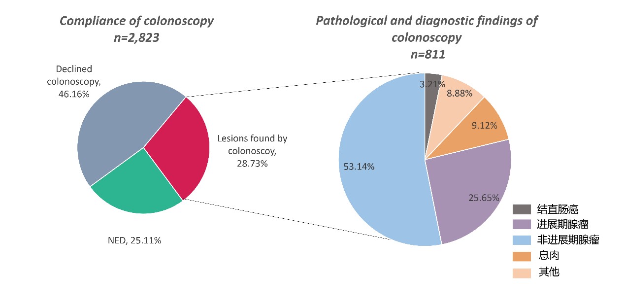 图1 高危人群结肠镜检查依从性及发现的肠道病变