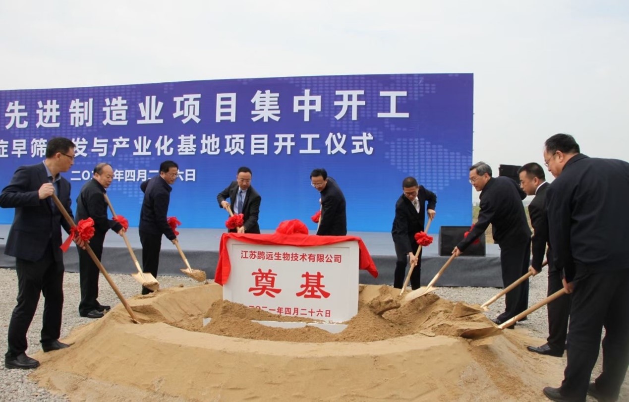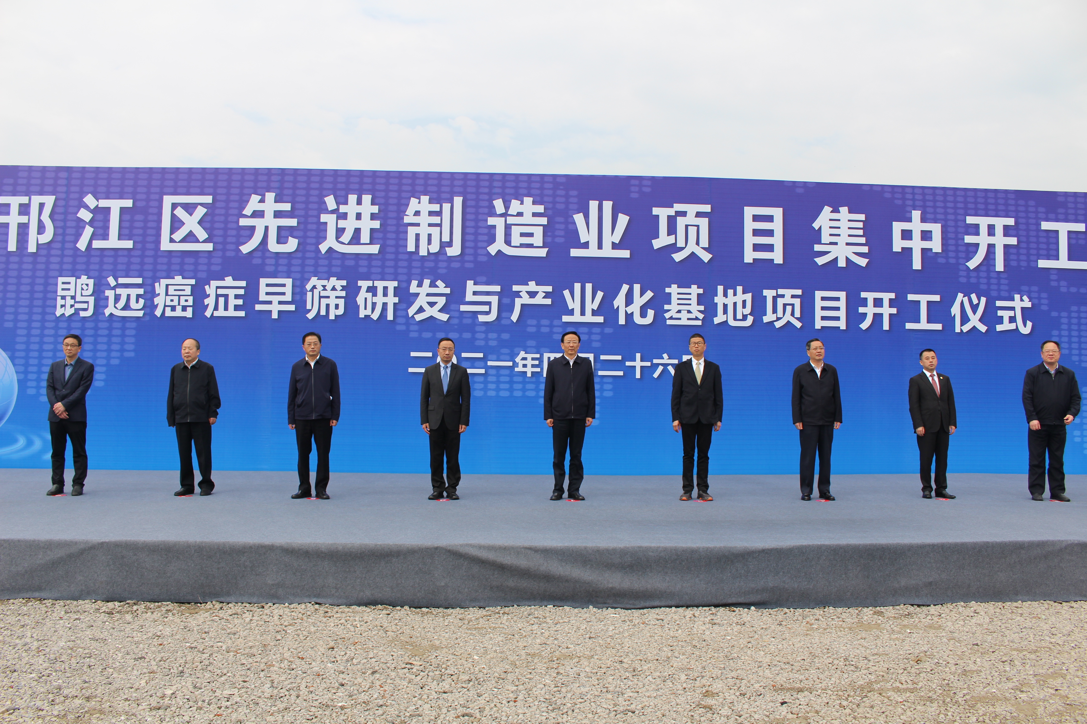 2021年4月26日上午,英国365集团官网癌症早筛研发与产业化基地开工仪式在扬州高新区生物健康产业园隆重举行。中共扬州市委书记夏心旻,中共扬州市委常委、秘书长韩骅,中共扬州市邗江区委书记钱峰,邗江区人大常委会主任陈佳宏,邗江区政协主席朱跃龙,中共扬州市邗江区委常委、高新区党工委书记、管委会主任叶华生,英国365集团官网董事长蔡建华,英国365集团官网首席执行官张江立,扬州建康汇董事长卞晓凯等领导和嘉宾出席了开工仪式。开工仪式由邗江区区长张新钢主持,参加现场开工仪式的还有扬州市市级机关有关部门负责人,扬州市邗江区人大常委会、政协、区主要职能部门及扬州市高新区主要负责人。