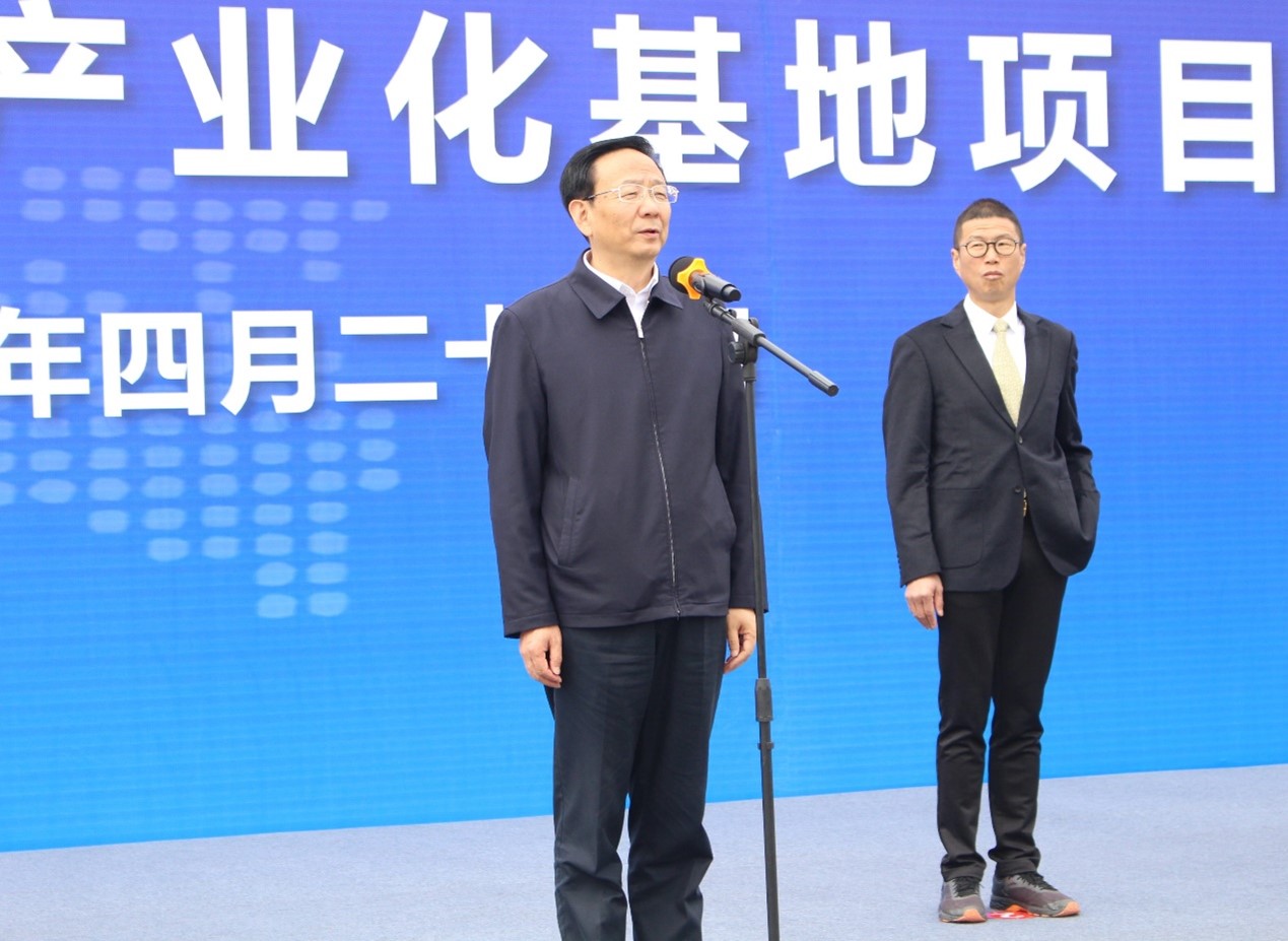 开工仪式现场,中共扬州市委书记夏心旻隆重宣布英国365集团官网癌症早筛研发和产业基地项目正式开工项目,并与出席开工仪式的领导和嘉宾同擎金铲,为项目扬土培基。