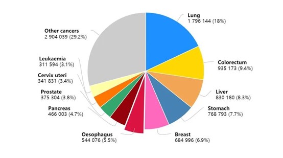 据世界卫生组织国际癌症研究机构(IARC)发布的2020年全球最新癌症负担数据:2020年全球癌症死亡病例996万例, 仅肺癌死亡就高达180万例(18%),远超其他癌种,位居首位。其中,中国癌症死亡人数又居全球首位,肺癌死亡人数高达71.5万,占比全球肺癌死亡人数的40%。中国肺癌的高死亡率,与就诊于中晚期居多关系密切。国际经验表明,积极采取预防、早期筛查、规范治疗等措施,对于降低癌症的发病率和死亡率效果显著。早诊断、早干预、早治疗,有助于帮助患者及时获得有效治疗,减低肺癌死亡率。