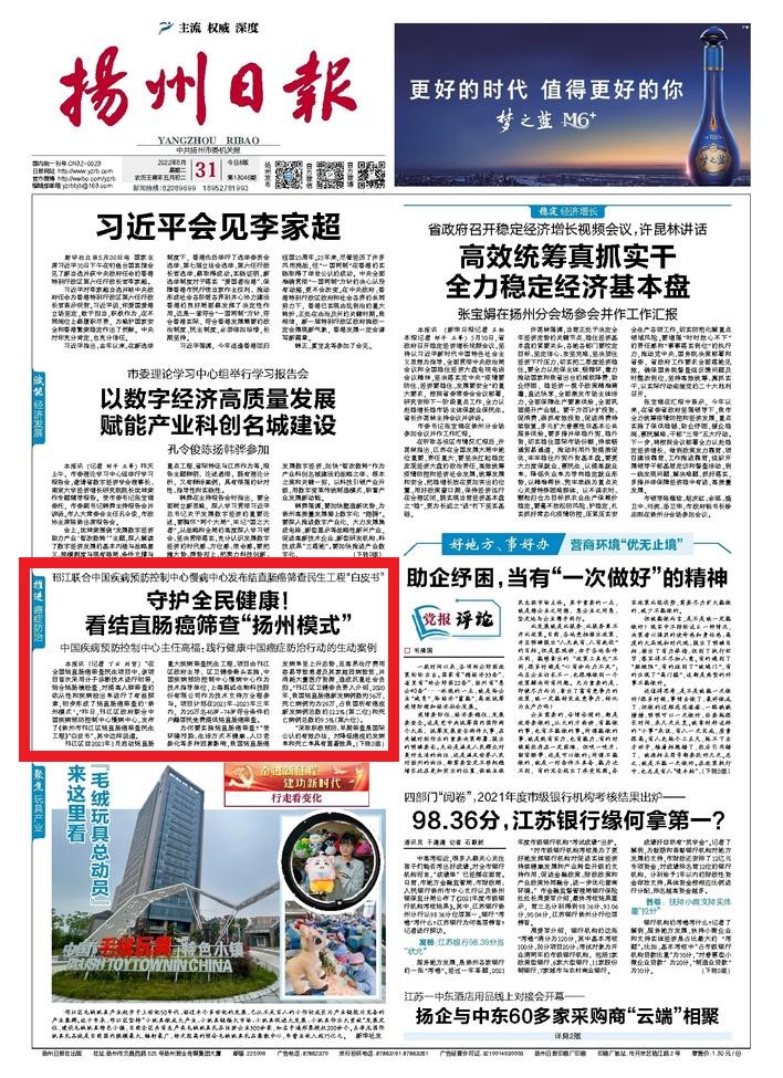 2022年5月30日,扬州市邗江区人民政府联合中国疾病预防控制中心慢病中心发布《扬州市邗江区结直肠癌筛查民生工程》白皮书(下称“白皮书”)。白皮书显示:2021年筛查近4万人,发现肠癌28例,肠腺瘤700例,通过筛查实现了疾病的早期发现并及时采取措施阻断了疾病的恶化,守护了老百姓的健康。