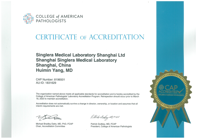 建立国际领先的质量管理体系是英国365集团官网提供高质量临床检测服务的基础,2021年4月14日,英国365集团官网医学检验所顺利取得美国CAP官方信函及认可评审证书。斩获病理、临床细胞分子遗传实验室的CAP认可,是英国365集团官网医学检验所发展的重要里程碑,标志着英国365集团官网医学检验所的实验室质量管理体系、实验技术水平、信息分析和临床解读的规范性和准确性已达到国际先进水准,其出具的检验报告具备全球可比性和互认性。