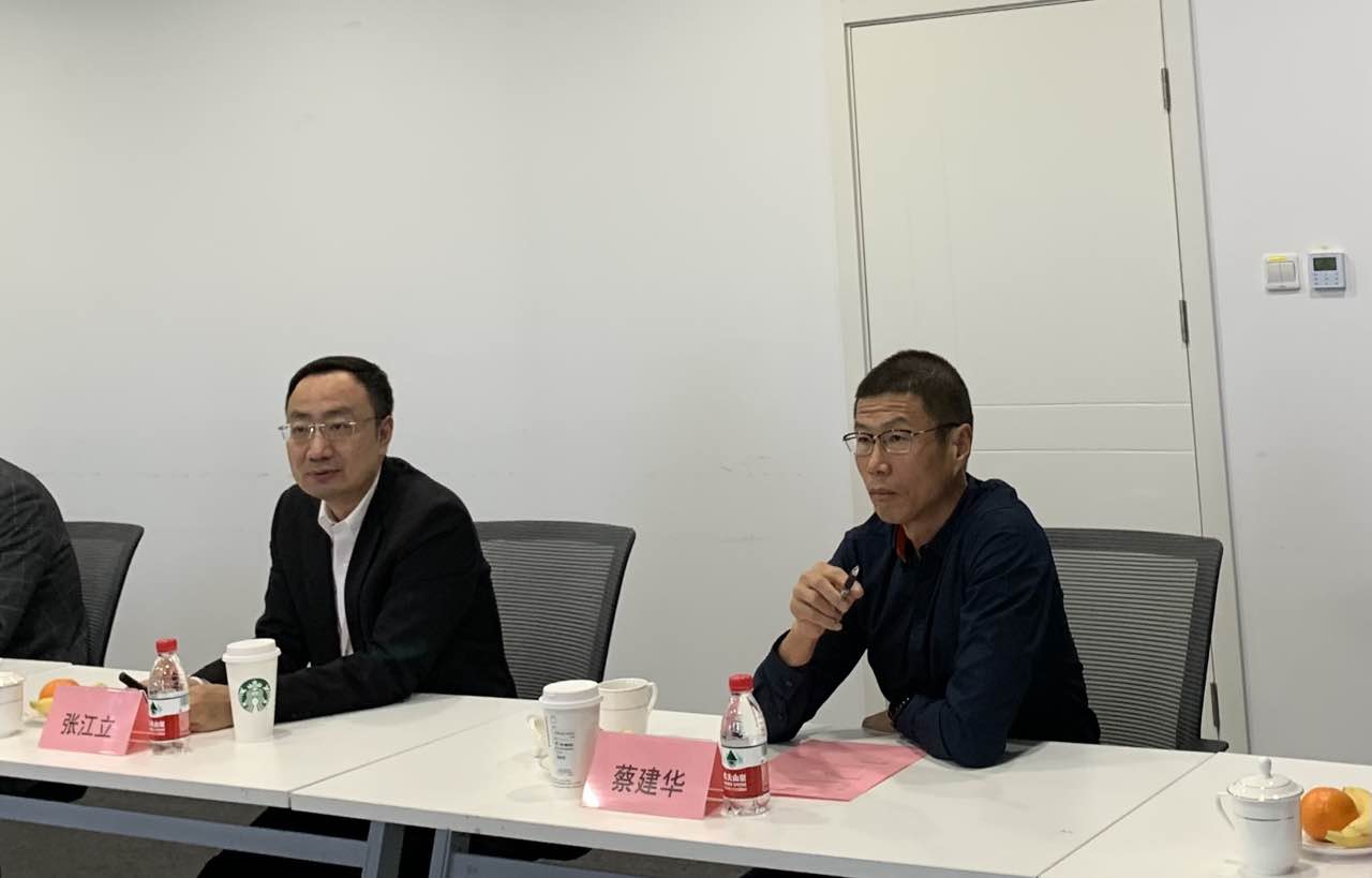 英国365集团官网董事长蔡建华(右)及首席执行官张江立(左)汇报