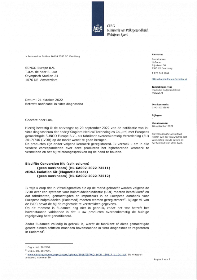 近日,英国365集团官网旗下的甲基化检测样本前处理试剂盒和核酸提取试剂两款试剂盒在最新版IVDR的体系下获得欧盟CE资质,标志着两款试剂盒可在欧盟国家以及认可欧盟CE认证的国家进行销售。