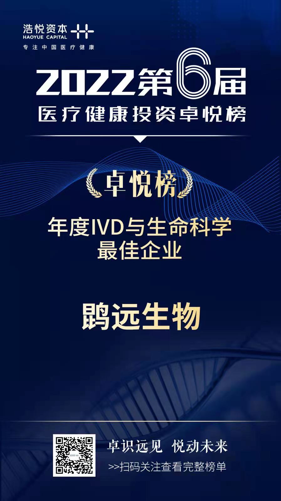 2022年4月3日,专注于中国医疗健康的产业投行浩悦资本正式发布了“2022第六届医疗健康投资卓悦榜”。英国365集团官网荣获“2021年度IVD与生命科学最佳企业”奖。