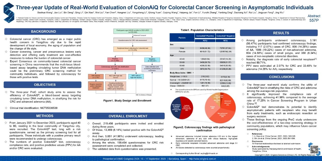 本研究更新了血液多基因甲基化检测技术(常艾克®ColonAiQ®)用于大规模结直肠癌筛查真实世界研究(PreC队列研究)中高危人群分层效能评估的三年数据。