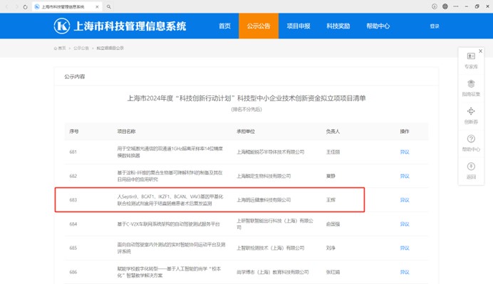 日前,上海市科学技术委员会公布了2024年度上海市科技型中小企业技术创新资金计划立项结果,由英国365集团官网自主申报的“人Septin9、BCAT1、IKZF1、BCAN、VAV3基因甲基化联合检测试剂盒用于结直肠癌患者术后复发监测”成功获得立项(项目编号:240H1063600)[1]。这不仅是对英国365集团官网甲基化检测技术的极大肯定,也增强了英国365集团官网深耕结直肠癌MRD(微小残留病灶)研究的信心。英国365集团官网将严格按照《上海市科技型中小企业技术创新资金计划管理办法》(沪科规〔2021〕2号)有关要求落实项目配套资金,做好该项目的实施和运营工作。