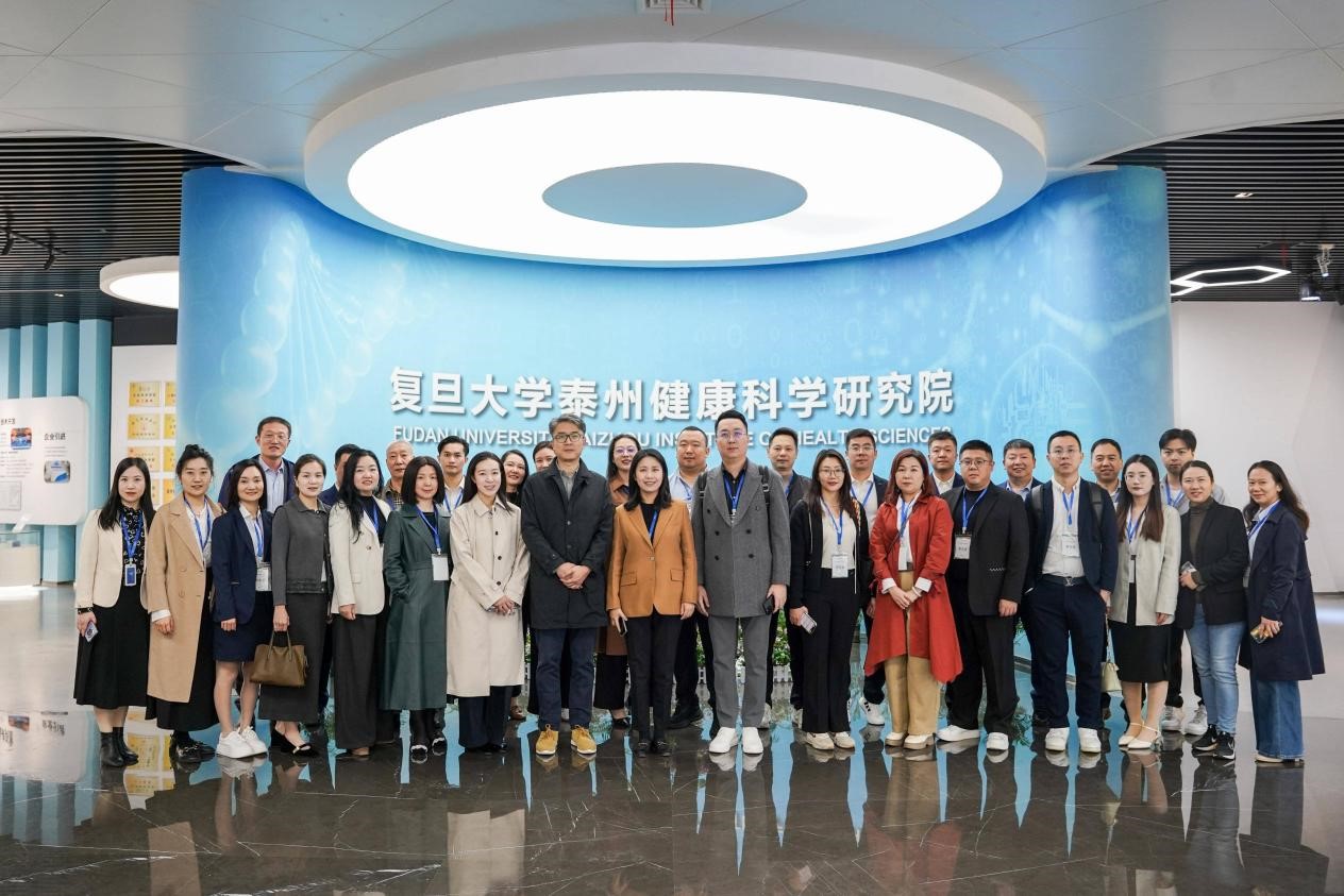 随后,代表团前往复旦大学泰州健康科学研究院参观交流,深入了解泰州队列建设与慢病管理研究进展。在研究院主题展厅,第一健康集团一行观看了泰州队列专题宣传片,系统了解了研究院在平台建设、科研创新与产业转化等方面的成果。交流环节中,双方重点围绕“福声计划”——中国人群泛癌早检前瞻性研究项目展开深入探讨。